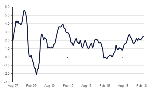 US data released on Thursday showed inflation of 2.5% in April, in line with expectations and up marginally on the 2.4% recorded the previous month. Also on Thursday, the Bank of England held its benchmark interest rate at 0.5%, as was widely expected – a turnaround from several months ago when a hike appeared the most likely outcome of the May MPC meeting. The communiqué highlighted poor Q1 results (0.1% compared to expectations of 0.4%) and ongoing Brexit uncertainties. After PM Theresa May’s EU withdrawal bill suffered another defeat in the upper chamber last week, there are two Cabinet working groups thrashing out details of two alternative customs plans for the UK post EU - ‘customs partnership’ and ‘maximum facilitation’. The EU regards PM May’s favoured customs partnership plan as ‘magical thinking’.