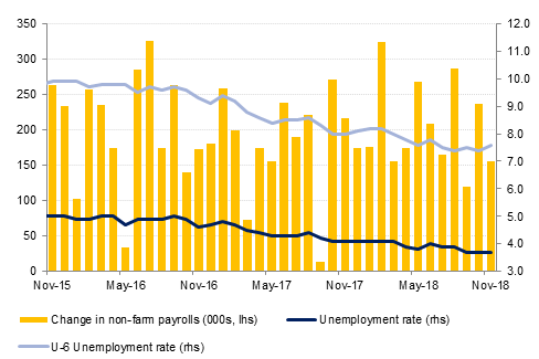 This weaker than expected reading was accompanied by a downward revision to October’s headline from 250,000 jobs to 237,000 jobs. This slowdown in job growth however was also accompanied by evidence of continued wage pressures. Hourly earnings remained at 3.1% y/y and as a result, the Federal Reserve is still expected to raise interest rates at their December meeting. However, with this outcome already priced in, the market will be looking for cues on the expected rate of tightening in 2019, with any hints of a slowdown likely to result in further dollar weakness. Overnight Japanese GDP growth in Q3 was revised lower to -0.6% q/q and to -2.5% on an annualised basis, hurt by a big fall in business spending as well as by a series of natural disaster. Going forward any recovery may be hampered by the US-China trade tensions.