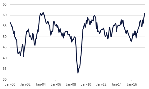 In fact most data released in the last 24 hours appears to show the global economy picking up momentum rather than slowing down which might be expected at this point in the recovery cycle. The Bank of Japan’s Tankan index rose to a decade long high in Q3 with business conditions for large manufacturers rising to 22 from 17 in Q2, while the outlook component rose to 19 from 15 for these companies. The UK fared a little worse with its manufacturing PMI dipping to 55.9 in September, lower than expected, but still a relatively firm reading after two previously strong months.