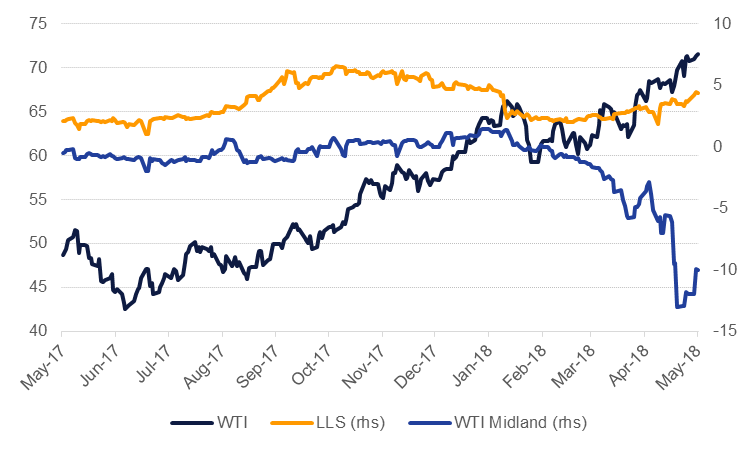We would expect to see further solid performance from US exports as producers seek access to the higher value seaborne markets. WTI Midland continues to trade at a wide discount to WTI. Pipeline capacity may keep export levels topped out at around current levels but considering the growth in US production, we expect US exports can be sustained if pricing remains attractive.